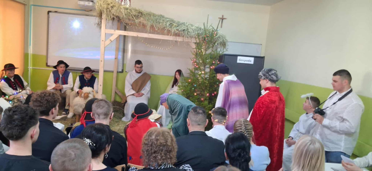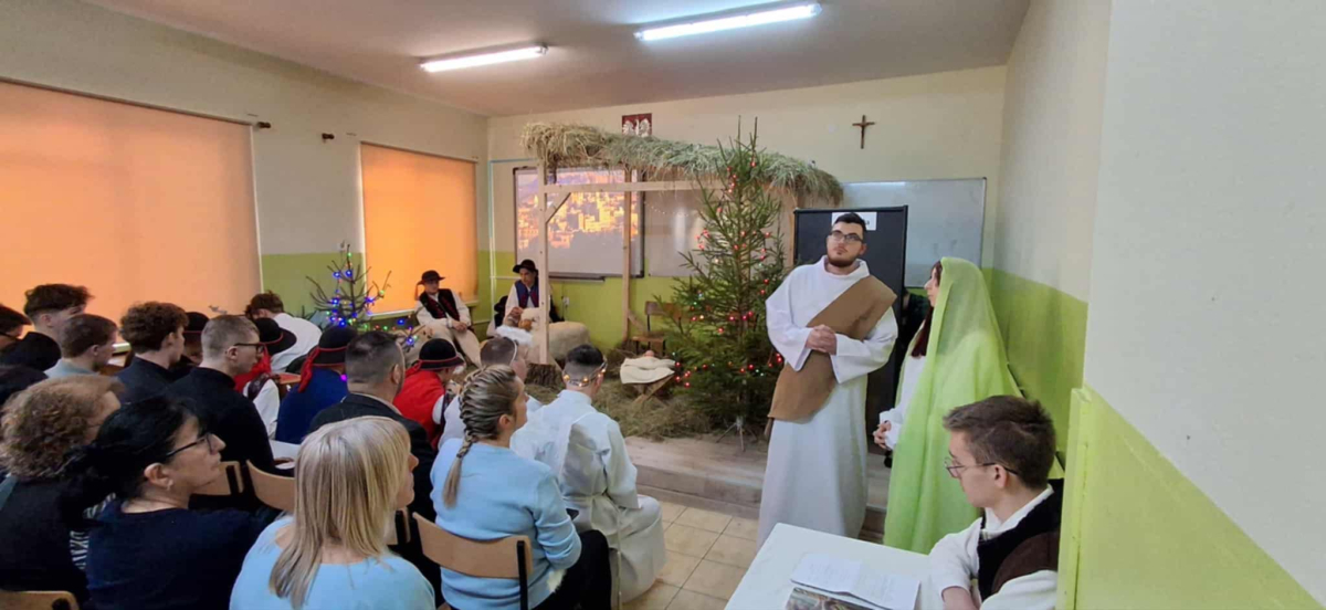 Zgodnie z tradycją naszej szkoły, zebraliśmy się wszyscy, by wspólnie kolędować, poczuć świąteczną atmosferę i podjąć refleksje nad tym, jakimi chcemy być ludźmi, jakie wartości obrać w życiu. Sprzyjał temu program artystyczny, który przedstawili nasi zdolni uczniowie. Nie zabrakło również góralskiej muzyki i powinszowań. Z pewnością jesteśmy już przygotowani do Świąt Bożego Narodzenia.