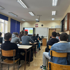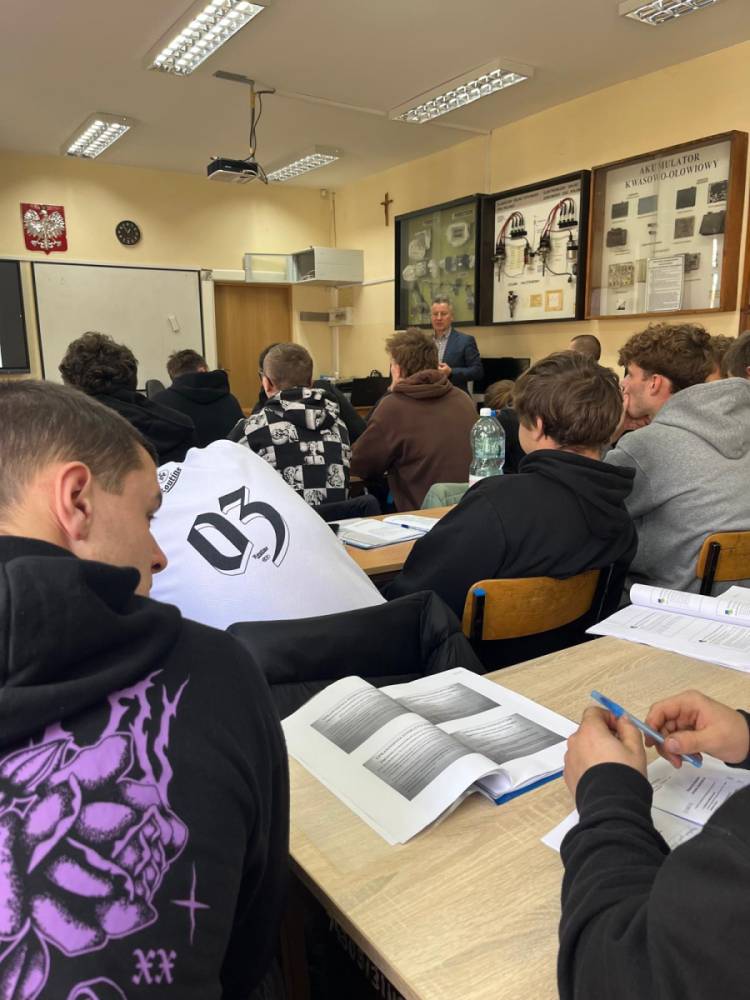 29 października br w ramach realizacji projektu unijnego „ Transformacja kształcenia branżowego w Powiecie Żywieckim-szkolenia i staże uczniowskie” 25 uczniów z klas 4 i 5 technikum samochodowego wraz z 6 nauczycielami przedmiotów zawodowych uczestniczyli w szkoleniu -„Uprawnienia SEP do 1 kV”. Szkolenia Elektroenergetyczne to specjalistyczne kursy, które dają uprawnienia w zakresie eksploatacji, jak i dozoru urządzeń instalacji elektrycznych. Przyszli technicy mechanicy pojazdów samochodowych do obsługi samochodów elektrycznych i hybrydowych muszą posiadać uprawnienia SEP 1 kV. Szkolenie zakończyło się egzaminem przed Komisją Kwalifikacyjną. Wszyscy uczestnicy spotkania zdali egzamin.